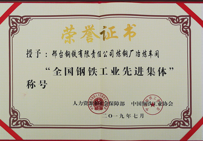 邢鋼煉鋼廠冶煉車間喜獲“全國(guó)鋼鐵工業(yè)先進(jìn)集體”榮譽(yù)稱號(hào)