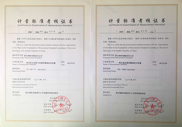 近日獲悉,邢鋼兩項(xiàng)企業(yè)最高計(jì)量標(biāo)準(zhǔn)《一氧化碳檢測報(bào)警器檢定裝置》和《氧分析儀和氧氣檢測報(bào)警器檢定裝置》獲得由邢臺(tái)市行政審批局頒發(fā)的《計(jì)量標(biāo)準(zhǔn)考核證書》。截至目前,邢鋼最高計(jì)量標(biāo)準(zhǔn)由15項(xiàng)增到17項(xiàng),專業(yè)范圍由5類增加到6類。