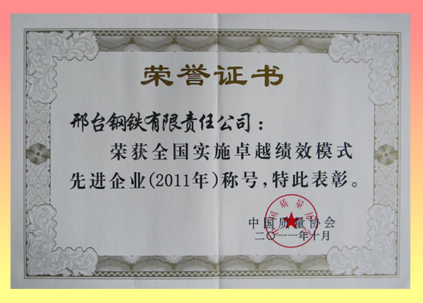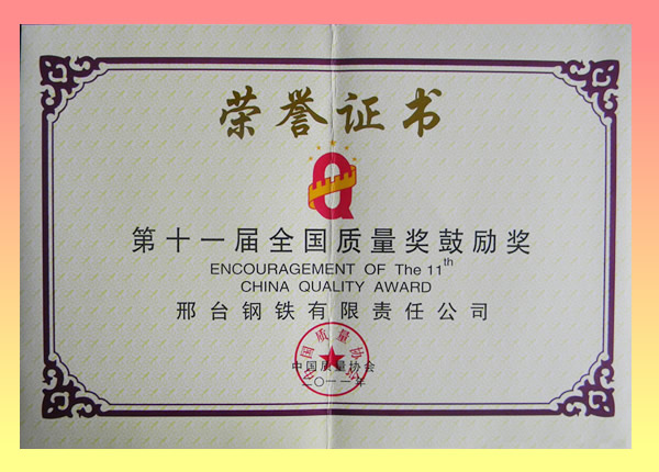 邢鋼榮獲“全國質量獎鼓勵獎”