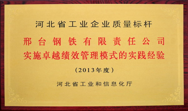 近年來(lái)我公司全面導(dǎo)入了卓越績(jī)效模式并逐步深化和創(chuàng)新,取得了顯著的效果,收到了政府、社會(huì)、行業(yè)的關(guān)注,經(jīng)邢臺(tái)市工信局和省冶金行業(yè)協(xié)會(huì)推薦,省工信廳組織專家組評(píng)議,確定了10項(xiàng)典型經(jīng)驗(yàn)為2013年度省工業(yè)企業(yè)質(zhì)量標(biāo)桿,其典型經(jīng)驗(yàn)在全省工業(yè)企業(yè)中推廣。