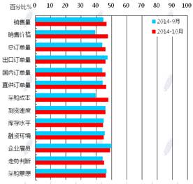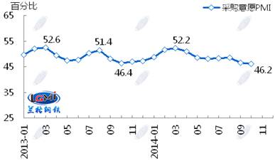 蘭格鋼鐵信息研究中心統(tǒng)計(jì)發(fā)布2014年10月鋼鐵流通業(yè)PMI總指數(shù)為47.8,環(huán)比微升0.6個百分點(diǎn)(見圖1),顯示鋼鐵流通市場活躍度略有好轉(zhuǎn)。從各項(xiàng)分指數(shù)看,10月份鋼鋼鐵流通業(yè)PMI調(diào)查的10項(xiàng)分指數(shù)5升5降。其中,企業(yè)銷量增加,下游訂單增加,但企業(yè)對后市較為謹(jǐn)慎,采購意愿未增(見圖2)。總體判斷11月鋼鐵流通市場需求景氣微升。