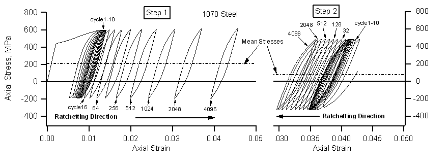 材料受到拉伸或壓縮時,如果力大于材料的屈服強度,那么材料就會發(fā)生塑性變形。外力卸載并反向加載,材料先是沿彈性線恢復(fù)繼而發(fā)生反向變形,如果反向加載的載荷小于初始加載的載荷,那么材料反向變形大小就會小于初始變形,進而產(chǎn)生了殘余應(yīng)變。如此反復(fù),這就是材料中的棘輪效應(yīng)。簡單點說,就是材料在非對稱應(yīng)力循環(huán)載荷下將會產(chǎn)生塑性變形循環(huán)累積現(xiàn)象,稱之為棘輪效應(yīng)。