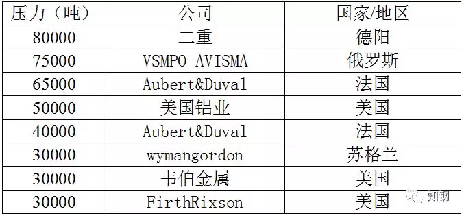 世界主要大型鍛壓設備分布: