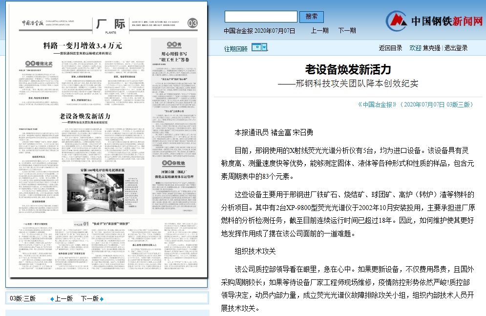 熒光光譜儀故障點涉及穩(wěn)壓器、循環(huán)水泵、循環(huán)水流量、高壓發(fā)生器XPSR(高壓發(fā)生器通訊控制板)、XPSI(高壓發(fā)生器功率控制板)等多個部件,備件原值30多萬元。邢鋼通過自主維修,不僅節(jié)省了大筆費用,也鍛煉了隊伍,為該公司以后的精密設備維護工作積累了寶貴經(jīng)驗。