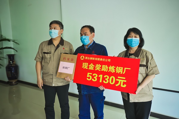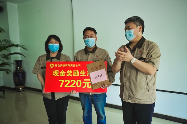 5月16日下午,公司207會議室傳來陣陣熱烈的掌聲,煉鐵廠、煉鋼廠、線材廠、焦化廠、生產(chǎn)部主管人員興高采烈地走到臺前,從公司領(lǐng)導(dǎo)張皓若、劉宏偉手中接過榮譽(yù)牌和沉墊墊的現(xiàn)金獎勵。此項(xiàng)舉措,是邢鋼公司對各生產(chǎn)指標(biāo)連創(chuàng)新高后激勵政策的首次兌現(xiàn),對各單位在“雙效提升”工作中所付出艱辛努力的充分肯定。