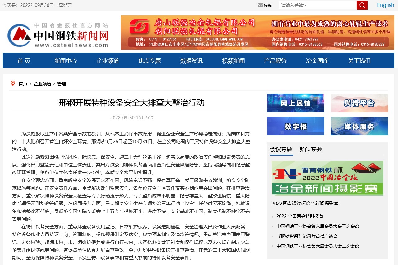 為深刻汲取生產(chǎn)中各類安全事故的教訓(xùn),從根本上消除事故隱患,促進(jìn)企業(yè)安全生產(chǎn)形勢穩(wěn)定向好;為國慶和黨的二十大勝利召開營造良好安全環(huán)境;邢鋼從9月26日起至10月31日,在全公司范圍內(nèi)開展特種設(shè)備安全大排查大整治行動。