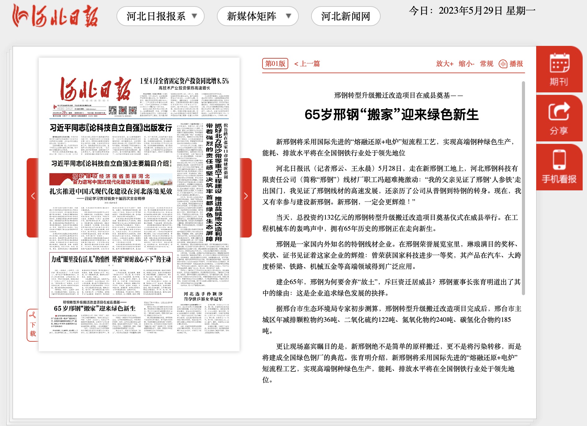 "We will continue to increase investment in technology research and development, build the largest green industrial park for deep processing of wire in the country around the extension of the industrial chain and sharing of resources." Zhang Yuming is confident about the future of Xingtai Steel.