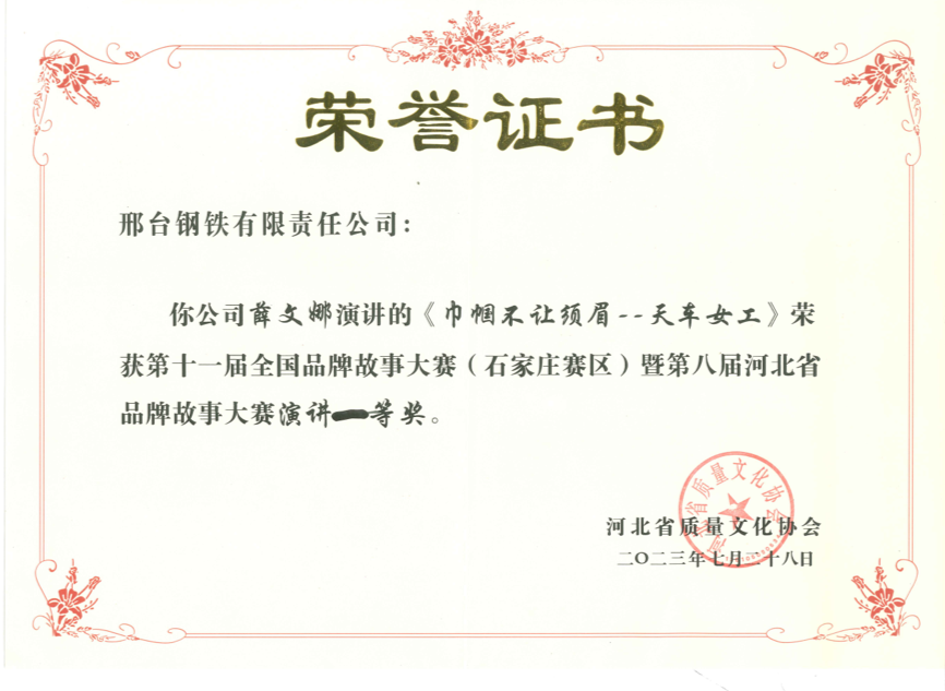 多年來,邢鋼公司高度重視品牌建設(shè)和運營,以打造世界知名品牌為目標,高質(zhì)量發(fā)展為引領(lǐng),不斷提高產(chǎn)品質(zhì)量和服務(wù)水平,實施產(chǎn)品轉(zhuǎn)型升級,打造邢鋼精品特鋼品牌?,F(xiàn)已連續(xù)四次參加品牌故事大賽活動,斬獲25個獎項殊榮。