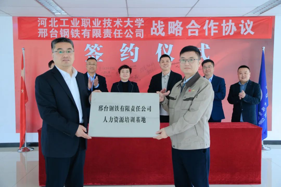 在與會(huì)人員的共同見證下,雙方代表簽訂了校企合作協(xié)議。還分別進(jìn)行了“河北工業(yè)職業(yè)技術(shù)大學(xué)大學(xué)生就業(yè)基地”、“河北工業(yè)職業(yè)技術(shù)大學(xué)實(shí)踐教學(xué)基地”、“邢臺(tái)鋼鐵有限責(zé)任公司人力資源培訓(xùn)基地”授牌互認(rèn)。